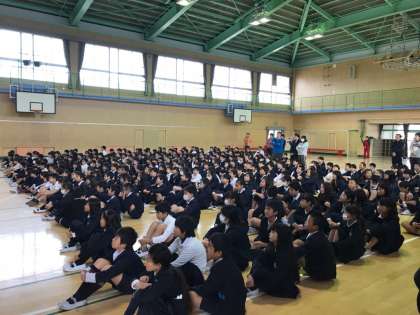 全校朝会では明日から始まる赤い羽根募金の連絡と今日から始まるなわとび週間の連絡がありました。
