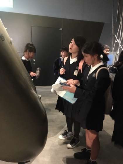 1階のDゾーン「多くの犠牲を出し焼け野原になった大阪」と3階のEゾーン「たくましく生きる大阪」でメモを取っている6年生です。みんな、とても熱心に見学してたくさんメモしていました。