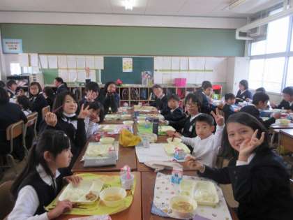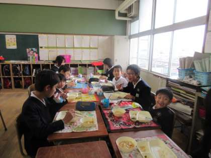 どの学年も楽しく、行儀よく食べていました。上の学年が下の学年の面倒をよく見てくれていました。