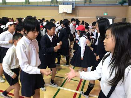 クイズや動きのあるゲームでは上級生に勝てないことも多いですが、じゃんけんは別です!!連勝を続けて、ずっと王様をしている1年生もいました!!
