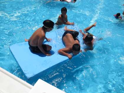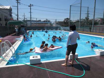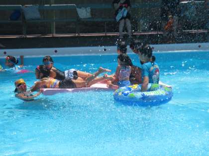 元気に親子プールを楽しんでいます。少しはしゃぎ過ぎていますが・・・笑顔がいっぱいです。