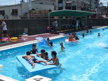 今日と明日7/26の2日間、PTA親子プールは実施いたします。午後1時〜3時までしていますので、時間内に来ていただければ入れます。気温がかなり高いので、熱中症予防に水筒等をご用意下さい。PTA会長 大藤