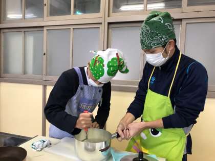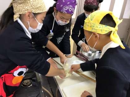 みんな一生懸命にしょうゆだれを作っていましたが、片栗粉でとろみをつけようとしてダマになってしまっている班もありました。