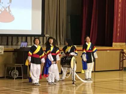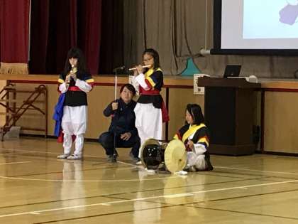 今日の発表会では、国際クラブに参加しているみなさんが韓国・朝鮮の楽器を使って演奏をしました。