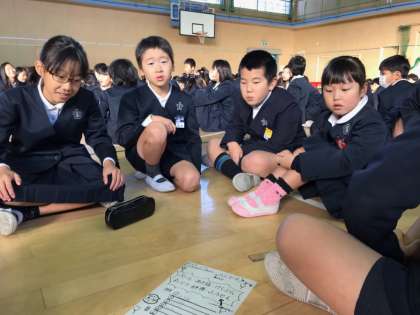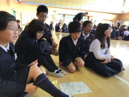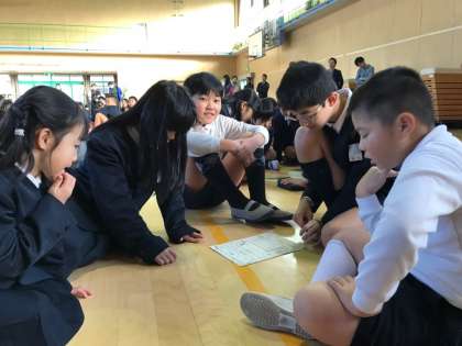このゲームは集会委員会の人が重さの違う5つの箱を1つずつ持ち上げていきます。