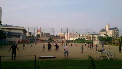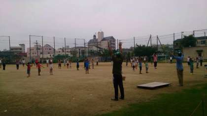 2・3・4・6・9町会のラジオ体操の様子です。場所は巽南小学校でしています。