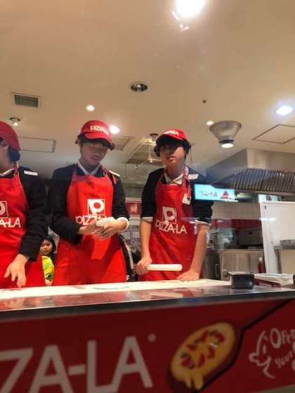 ピザショップ、理容店、石けん工場の様子です。体験で作ったものはお土産としてもらうことができます。
