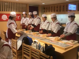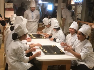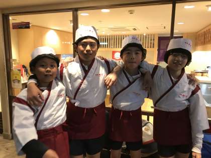 すし屋さんとベーカリー(パン職人)の仕事体験の様子です。
