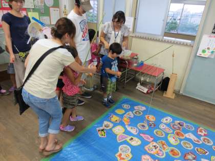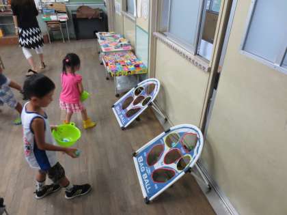 「つりゲーム」「ボール入れ」「コルク射的」のお店です。地区委員会の方々が担当されています。