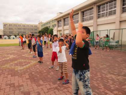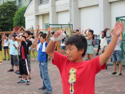朝のラジオ体操の様子