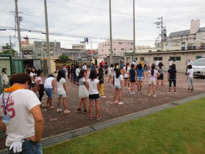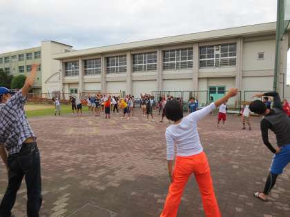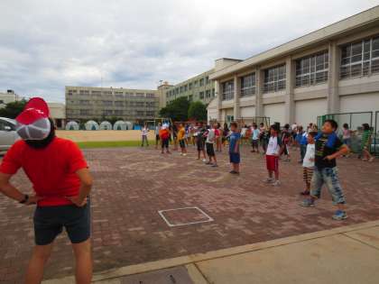 かなり眠たそうですが、朝のラジオ体操を元気にしています。