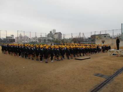 久々の外での全校朝会です。