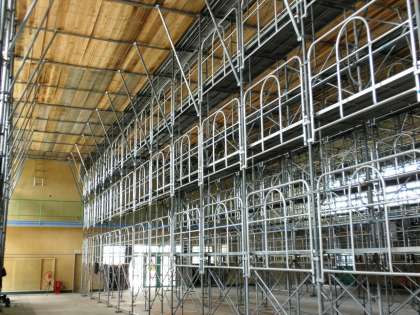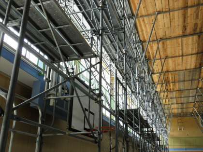 照りつける日差しの中で、屋根裏での作業が行われています。