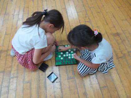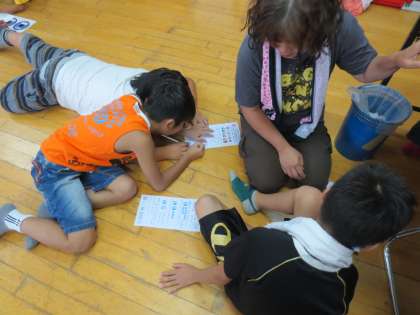 たくさんの子どもが低学年のプール開放に参加したので、スペースを大きくとり、のんびりと遊んでいます。