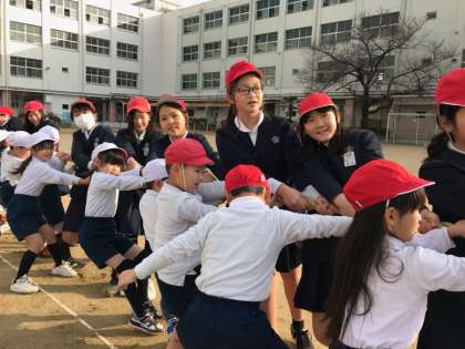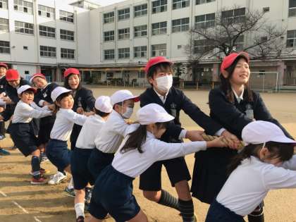 普段も休み時間に一緒に遊ぶことのある1年生と6年生ですが、なかよし集会ではいつもよりさらに楽しそうにしている様子が見られました。