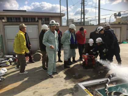 10日(日)に巽南地域の防災訓練がありました。生野消防署の方々による救助訓練等が行われました。地域防災リーダー隊長の那須さんを中心に地域の方々が参加されました。