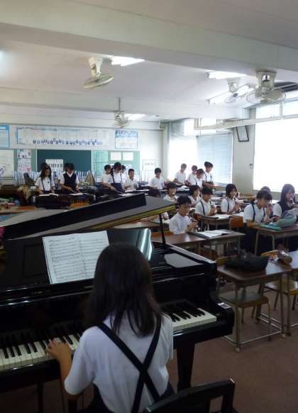 6年生は音楽で合奏「ラバース コンチェルト」に取り組んでいます。