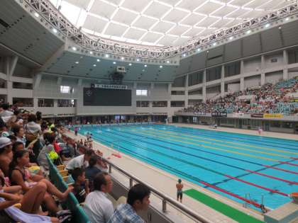 港区の大阪プールで児童水泳記録会が行われました。巽南小学校の参加児童も、この大きな50mプールで、記録にチャレンジしてくれました。