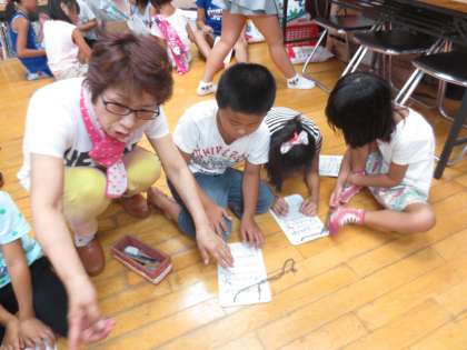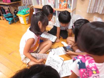 高学年は低学年の計算を手伝ってあげていました。みんな協力してゲームに取り組み、どの子もとても楽しそうでした。
