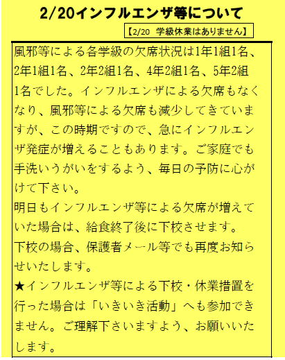 【2/20学級休業はありません】