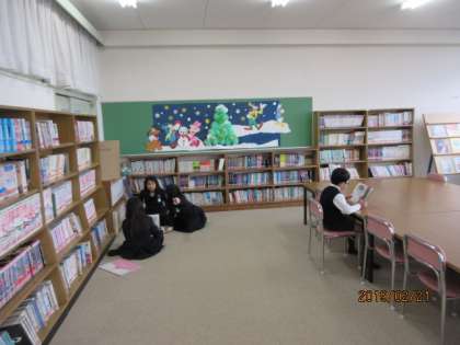 今日の図書館開放は、学校図書館ボランティアの大久保さんに開けていただいています。紙芝居を読んだり、お話したり、本を読んだり、それぞれの過ごし方をしています。