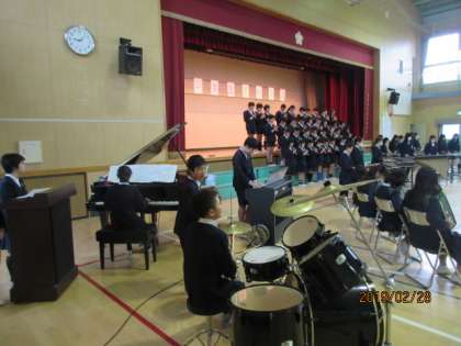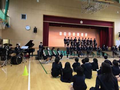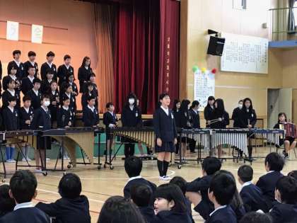 ピアノや鉄琴、リコーダー等々、たくさんの楽器を使っての迫力ある演奏に、在校生の人たちも驚いていました。