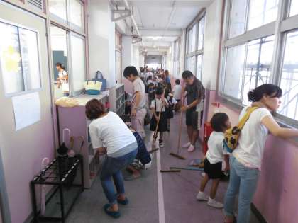 もうすぐ2学期が始まります。保護者の方々がたくさん来ていただき、親子で大掃除をしました。とても学校がきれいになりました。子どもたちは気持ちよく学習が始められます。多くのご参加いただいた保護者の皆さま、ありがとうございました。