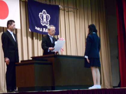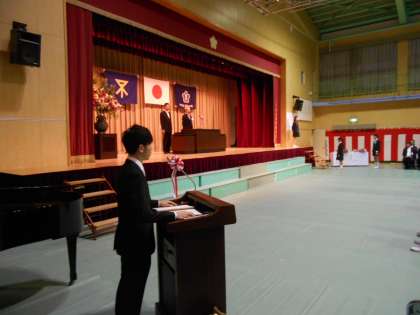 卒業生が堂々と入場し、静かな講堂に、君が代、大阪市歌、校歌の歌声が響きわたっていました。何度も何度も練習した卒業証書授与が始まりました。