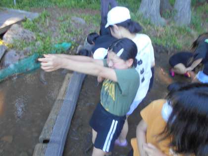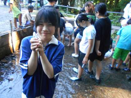 捕まえたと思ったら、手の中からひらりと川へ・・・