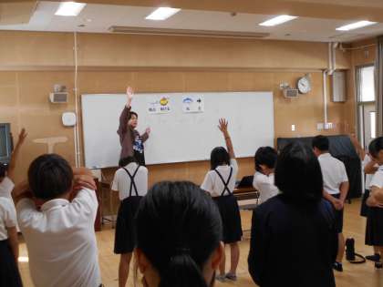 「L」と「R」の聞き分けや、アメリカと日本の慣習の違いなどクイズを交えながら楽しく学ぶことができました。北山さんの授業を受ける子どもたちは、いつもよりテンションも高く笑い声が絶えませんでした。
