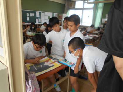 自分の思い出に残ったシーンを描いていました。絵筆を細かく動かしながら描いていました。