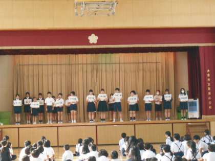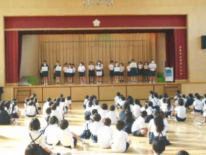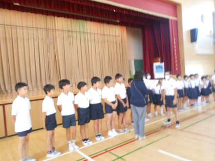 今日の集会では、後期委員会委員長と学級担当者の紹介がありました。