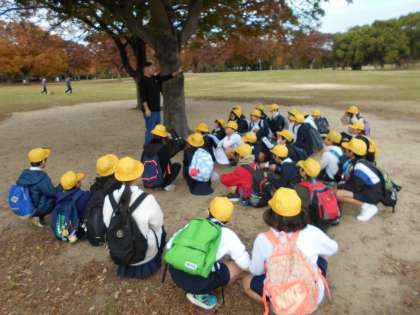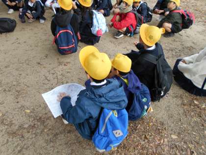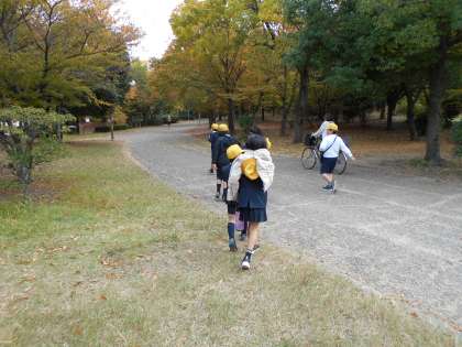 4年生は秋の遠足で鶴見緑地公園に行きました。班ごとに役割やルートを決めて、ウォークラリーを体験しました。戻ってくる時間や注意することについての説明を真剣に聞いています。いざ、出発です!!