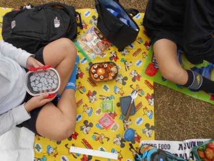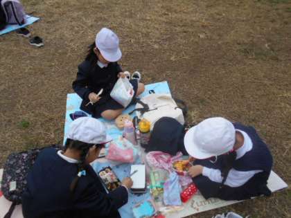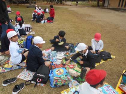 曇り空で少し寒かったのですが、子どもたちはそれも忘れてお弁当を食べました。