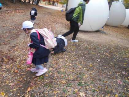 楽しいお弁当・おやつタイム後はドングリ拾いをして、公園で思いっきり遊びました。