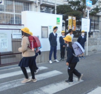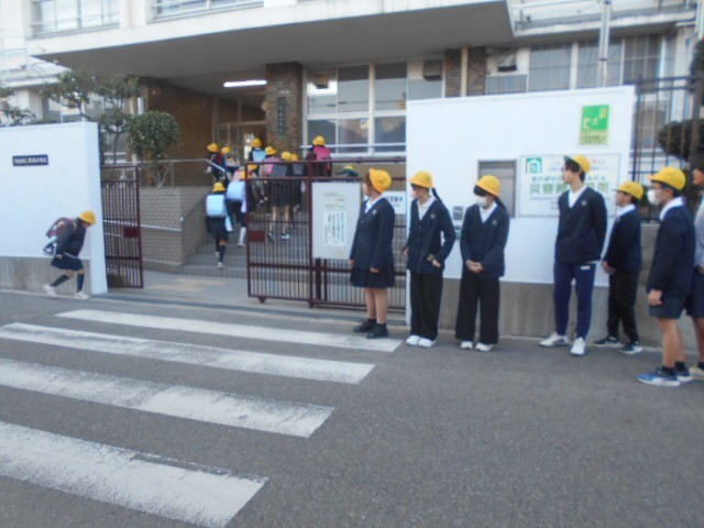 担当委員会の児童が正門前であいさつをしながら、みんなを迎えてくれました。