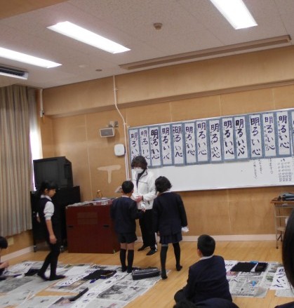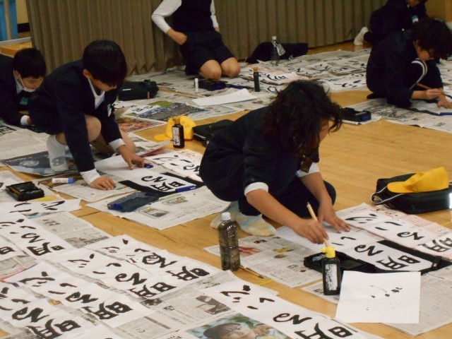 「先生、泣きの1回で・・・」と納得するまで新しい半紙をもらいに行く児童もいました。