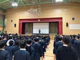 最後に、担当の先生の指揮で「校歌」を歌いました。 講堂内に、きれいなハーモ...