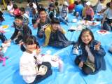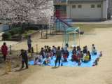 満開の桜の下で「いきいき活動」の子どもたちがお弁当を食べていました。みんな元気に...