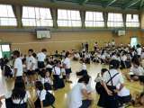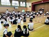 今日の集会は「〇×ゲーム」です。 集会委員会の児童が出す問題を、〇だと思っ...