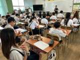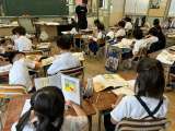 1組の家庭科は、「整理・整とん」についてのテストをしていました。 2組の...