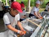 魚を丁寧に洗い、スタッフの人に焼いてもらいます。 自分でつかんだ魚はどんな味な...