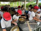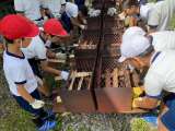 カレーを作るために、役割ごとに分かれて調理します。 火は上手に起こせるでしょう...