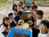 班のみんなでカレーを食べます。 自分たちで作ったカレーの味はいかがでしょうか。