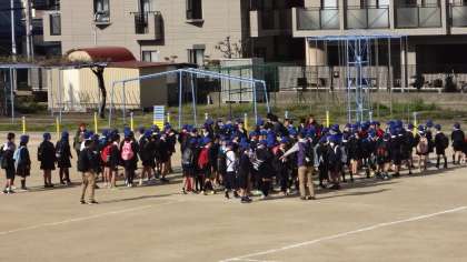 5・6年生が、飛鳥・石舞台古墳への遠足に出発しました。