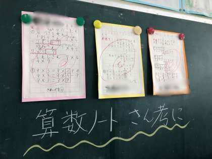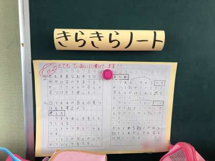 ノートをていねいに書くことができた子のノートを掲示したり、みんなの素敵な行動をいいことちょきんばこに貯めたりしています。ほかにも、かえりの会でうれしかったことやよかったことを発表して、友だちのいいところをいっぱい知るくふうをしています。