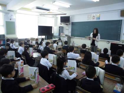 1年生は、国語の教科書を大きな声ではきはきと音読することができました。