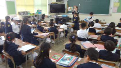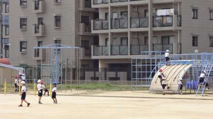 みんなのノートを配ったり、運動場の遊具や鉄棒をつかって体を動かしたりしています。