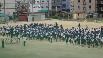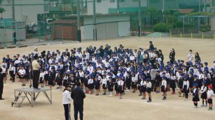 全校朝会で、いくみんパトロールの紹介をしました。生野区役所の方々も登下校の見守りをしてくださっています。