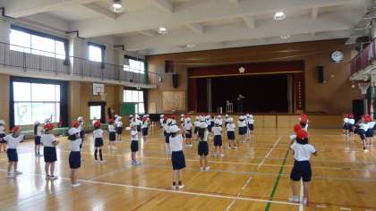 1年生は、運動会の団体演技の練習をしたり、ひらがなの学習をしたりしています。